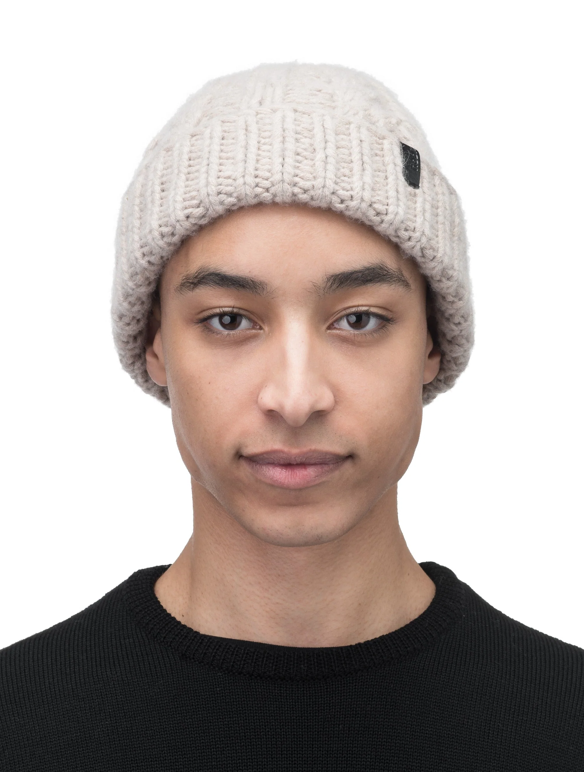 This gender-neutral beanie has a cozy ribbed construction knitted from superfine merino wool and cashmere. It's made in a fold-over silhouette and subtly detailed with a leather Nobis logo tab. Wear it with the cuff flipped up for a snug fit or unfold it for a fuller fit.